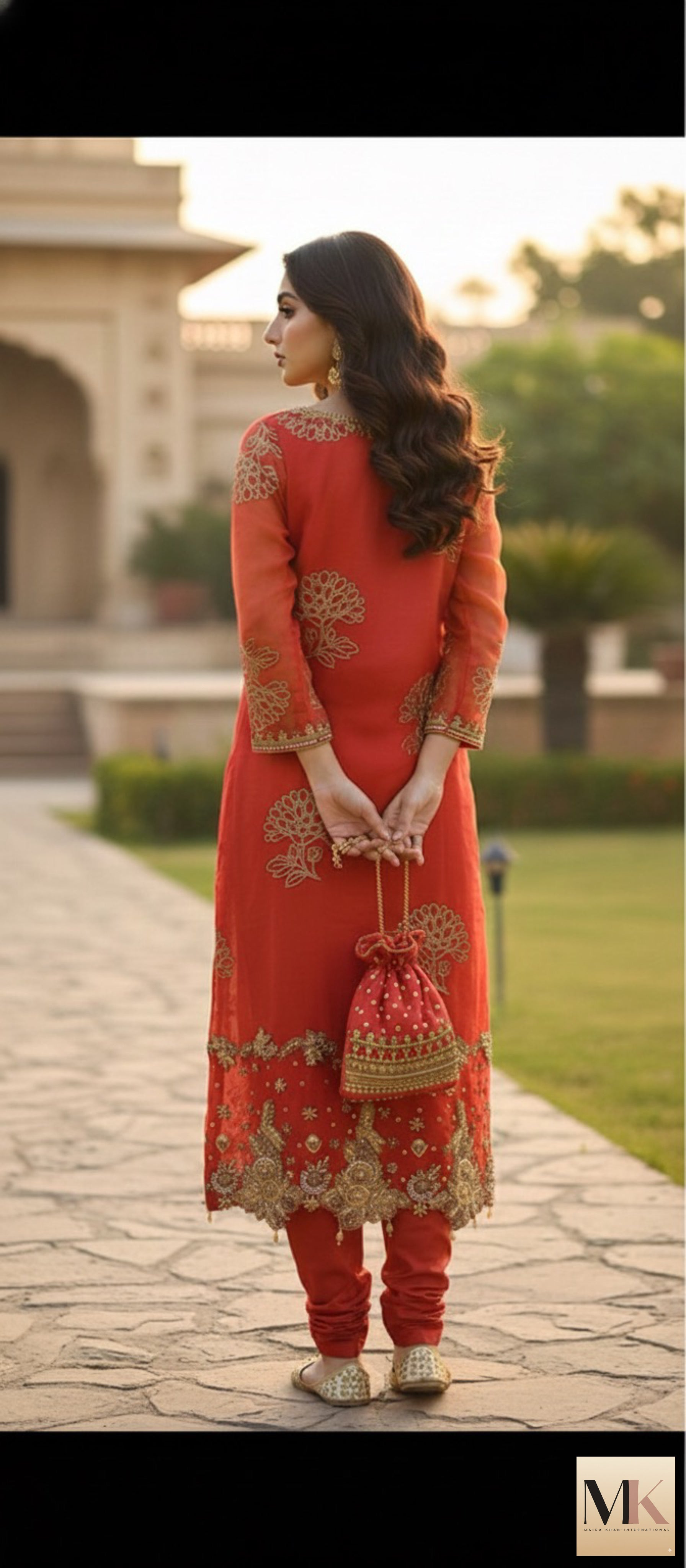 A finely embroidered festive ensemble inspired by Mughal architecture, defined by elegance and balanced detail.